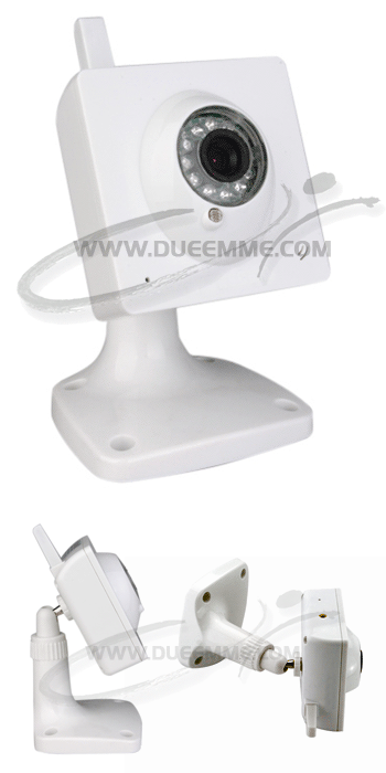 Telecamera per la visione di ambienti interni e controllo tramite protocollo IP, via rete ethernet o wireless senza fili. Si può visualizzare l'immagine tramite PC Internet senza bisogno programmi aggiuntivi con browser tipo Firefox Chrome e Internet Explorer etc. e via cellulare con Apple Iphone, ipad 1, 2, new ipad e telefoni con sistema operativo Android. Possibilità di visione contemporanea di più utenti dotati di password (max 4 utenti) Circuito di visione notturna con aggiustamento su infrarosso, bilanciamento automatico dei colori e del controluce. Microfono incorporato. Antenna WIFI